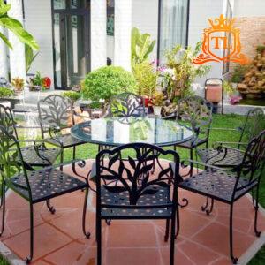 Bàn ghế trang trí sân vườn không chỉ có tác dụng trang trí mà còn là nơi để gia đình, bạn bè, người thân tụ họp, chia sẻ niềm vui. Mặc dù được thiết kế bằng nhiều chất liệu khác nhau như: gỗ, nhựa, nhựa giả mây…thể những những mẫu bàn ghế sân vườn sắt nghệ thuật lại chiếm được nhiều cảm tình từ phía khách hàng, đặc biệt là những gia đình ưu thích phong cách cổ điển, sang trọng.